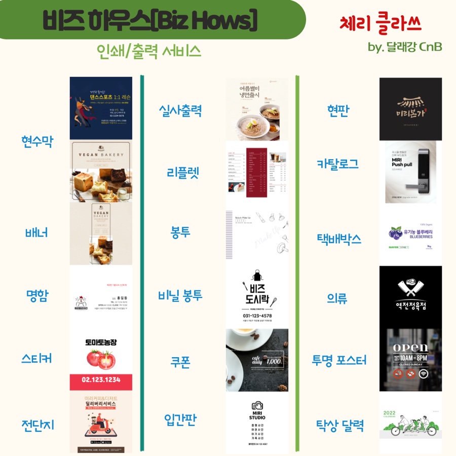 - 예: 대형 포스터, 브로셔, 명함 인쇄 등